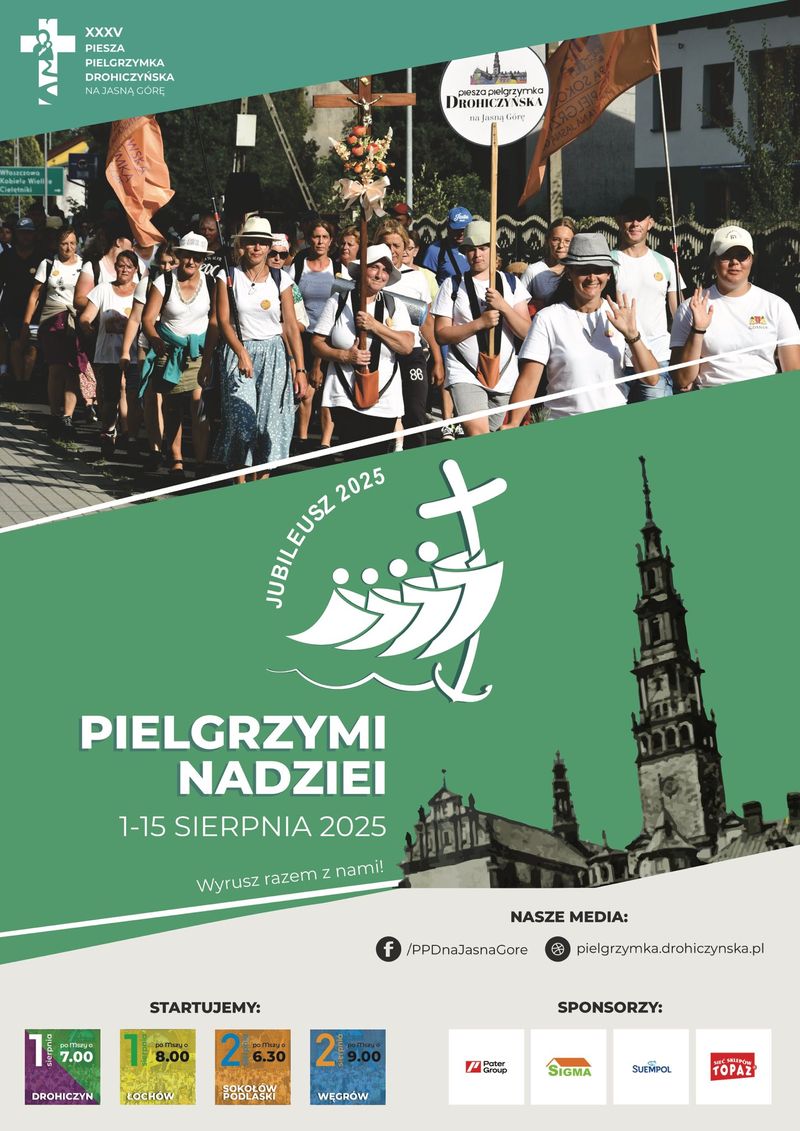 W tym roku hasło przewodnie pielgrzymki nawiązuje do trwającego w Kościele Roku Jubileuszowego i brzmi: „Pielgrzymi Nadziei”.Pielgrzymka Drohiczyńska tradycyjnie rozpoczyna się 1 sierpnia, a kończy 15 sierpnia. Pielgrzymkę tworzą grupy: Bielsko–Drohiczyńska, łącząca dekanaty bielski, brański i hajnowski, ciechanowiecki, drohiczyński, sarnacki i siemiatycki; Sokołowska – dekanaty sokołowski i sterdyński; Węgrowska – dekanat węgrowski oraz Łochowska – dekanat łochowski. Dodatkową grupą będą pielgrzymi duchowi tworzący Grupę Srebrną.