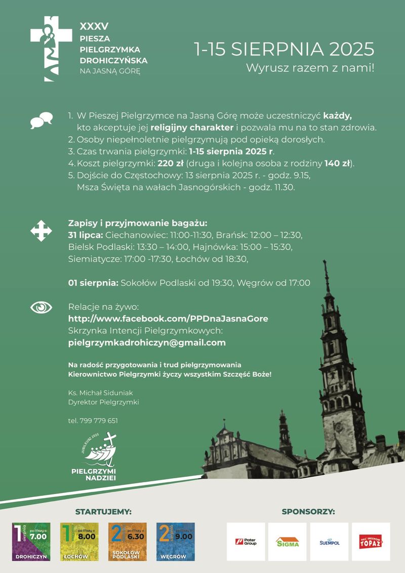 35. Piesza Pielgrzymka Drohiczyńska na Jasną Górę ruszy za trzy tygodnie