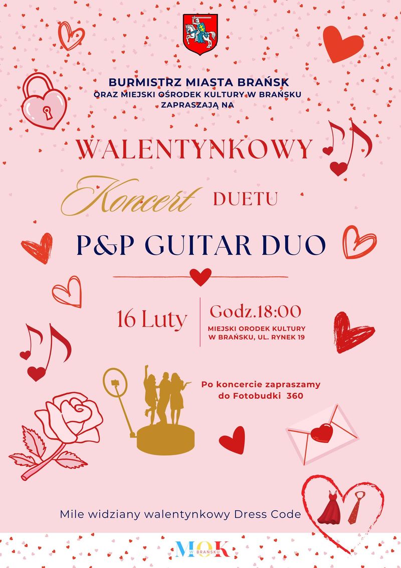 Wyjątkowy koncert walentynkowy zaplanowano w Brańsku. Dla wszystkich zakochanych i poszukujących miłości, wystąpi duet „P&P Guitar Duo”.