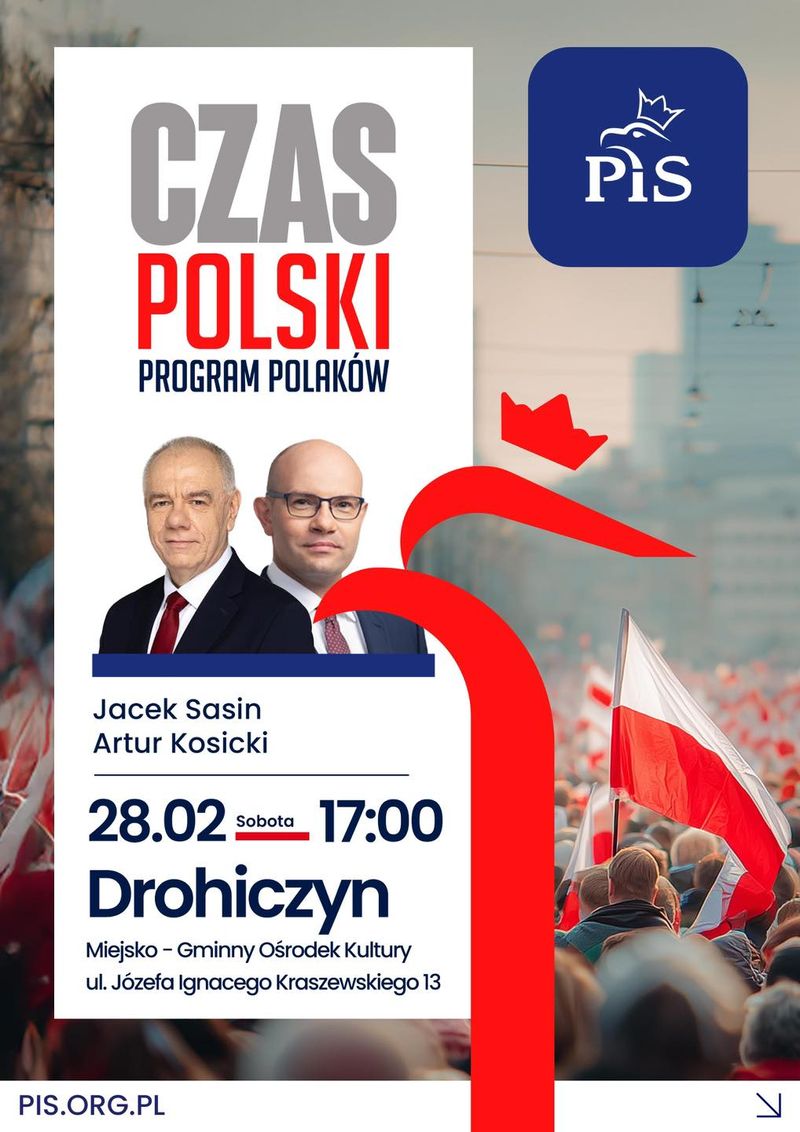 „Czas dla Polski – program Polaków” – tak brzmi myśl przewodnia spotkania z przedstawicielami Prawa i Sprawiedliwości, które odbędzie się w sobotę, 28 lutego, w Drohiczynie.